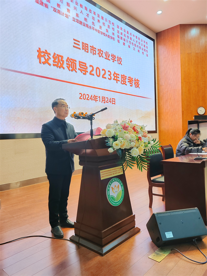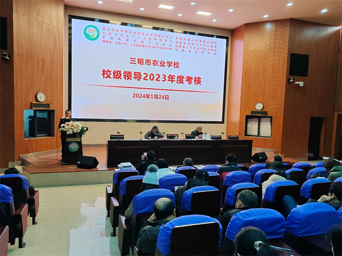 1月24日上午,开元平台(中国)在学术报告厅召开2023年度校级领导年度考核工作会。受中共三明市委组织部和中共三明市委教育工委委托,三明市教育局四级调研员何正润、市教育局初教科干部李晓燕莅临学校,开展2023年度学校领导班子年度考核工作。学校130余位教职工与会。